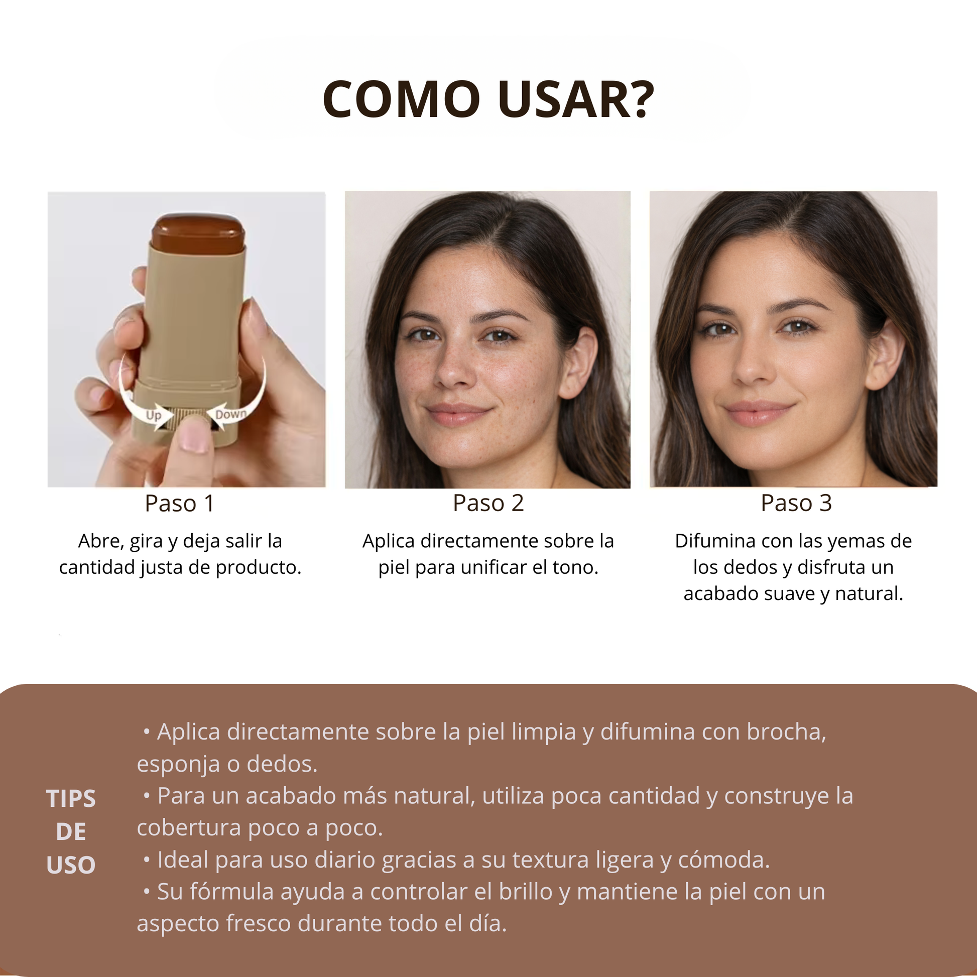 Piel uniforme, natural e hidratada en segundos. El stick favorito de creadoras para cubrir imperfecciones sin perder frescura.